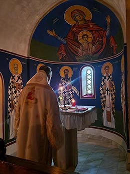 Денес, на празникот на светите праведни Јоаким и Ана, Митрополитот Струмички г. Наум отслужи Божествена Литургија во параклисот на манастирот „Покров на Пресвета Богородица и свети Леонтиј“, во Водоча.
