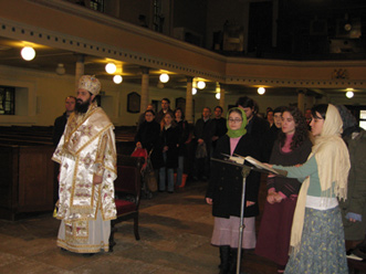 Пристигна Владиката. Радост неизречлива. Насмевката ти го стоплува срцето. Одекнуваат зборовите: Кој влегува низ вратата, пастир е на овците; нему вратарот му отвора и овците го слушаат гласот негов, и тој ги вика своите овци по име... и овците одат по него, бидејќи му го познаваат гласот негов; а по туѓ човек не одат, оти гласот на туѓиот не го познаваат (Јов.10,2-5). Возглавени од нашиот Пастир, заедничаревме во она Благословено Царство на Отецот, Синот и Светиот Дух. Хорот пак, кој Господ го собра од краиштата на земјата (Македонија, Англија, Грција, Романија, Франција), одговарајќи на повеќе јазици, дополнително сведочеше за нераскинливото единство на Црквата...